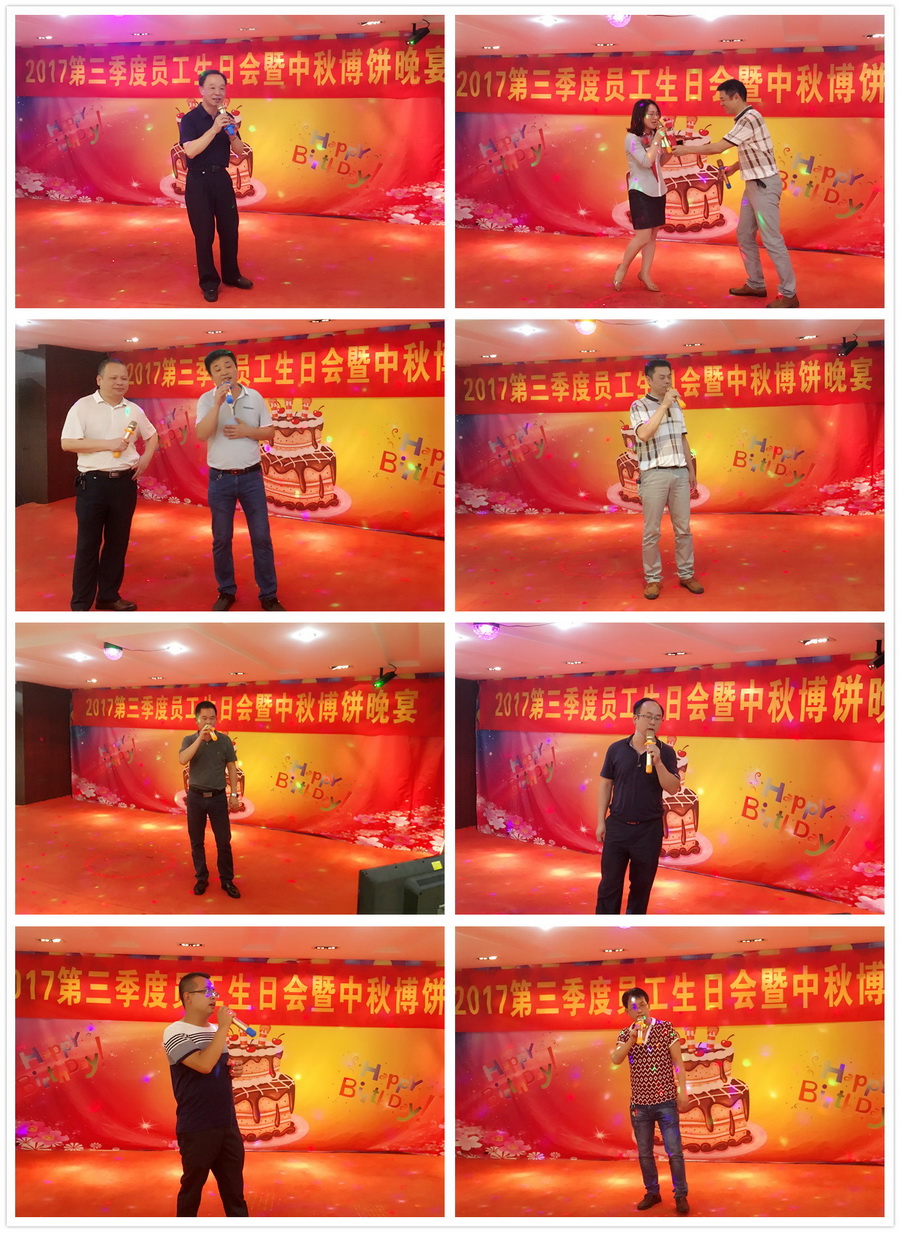 9月29日晚上,公司在七樓多功能廳隆重舉辦了“2017第三季度員工生日會(huì)暨中秋博餅晚宴”本次活動(dòng)共分為兩個(gè)環(huán)節(jié):博餅、聚餐活動(dòng)。活動(dòng)當(dāng)晚,在中獎(jiǎng)率特高的博餅拉開(kāi)了晚會(huì)的序幕,各位同事都寄望于今晚的博餅活動(dòng)能博出精彩,博到大獎(jiǎng)。